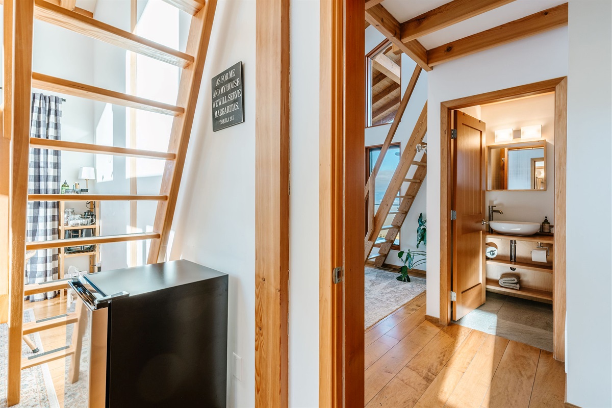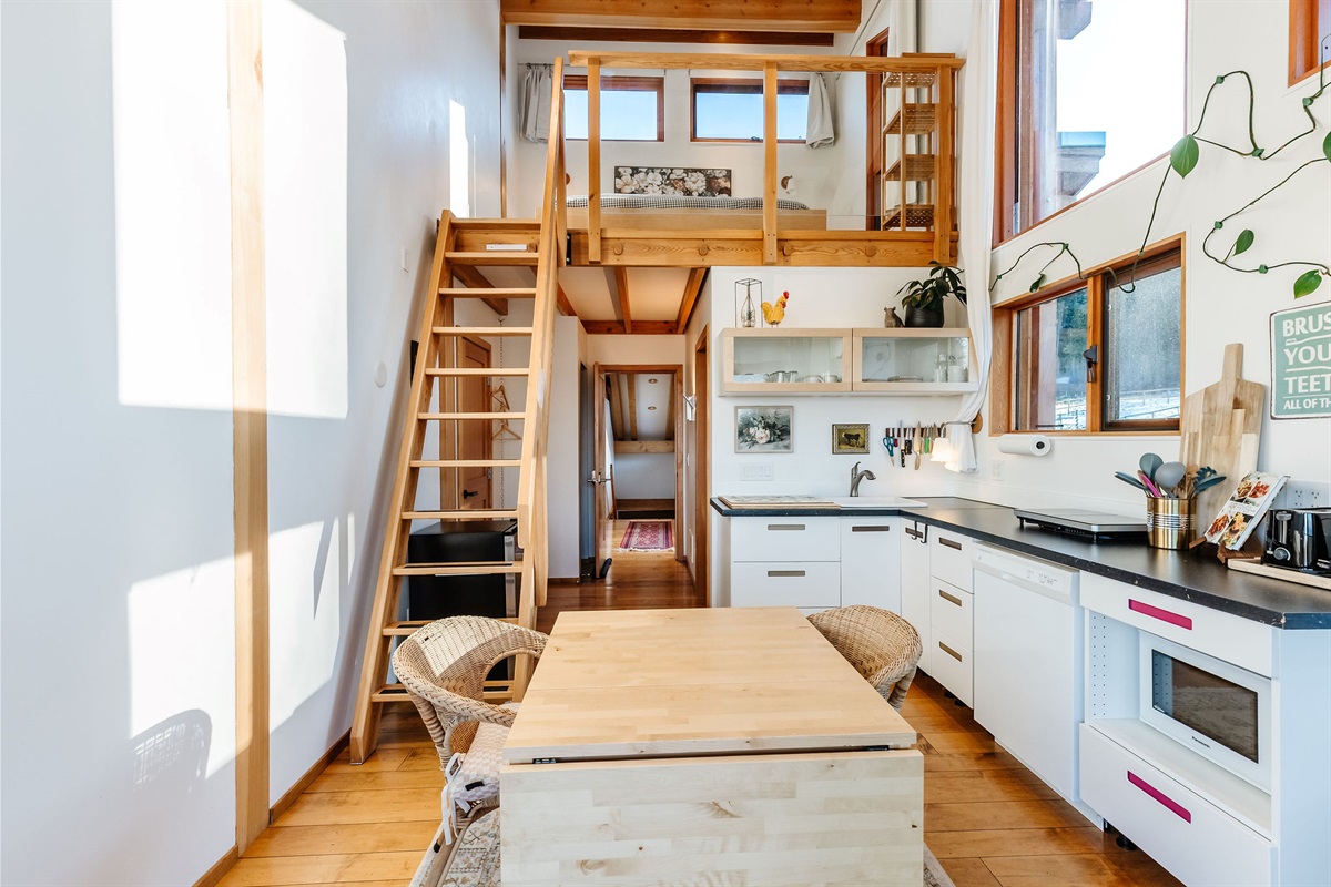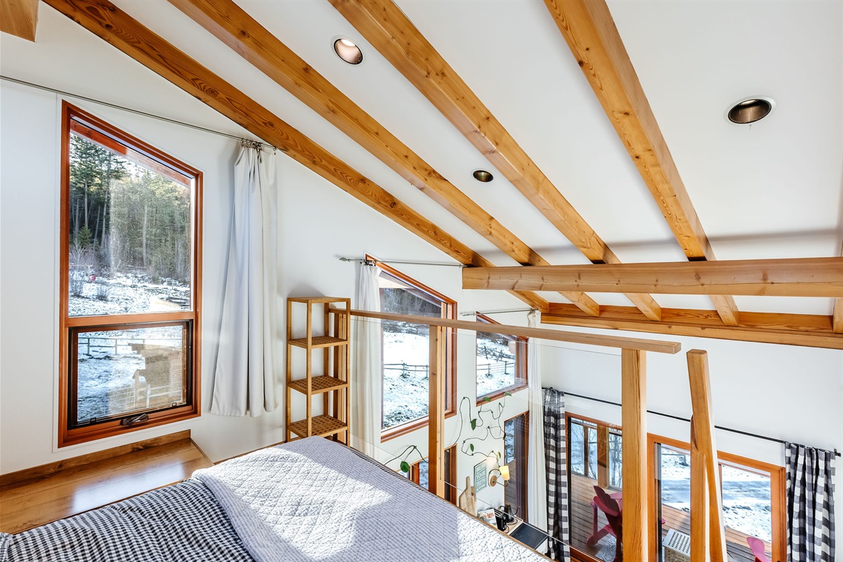 The King Beds in each room are located in a loft that is accessed by a ladder. This space may not be suitable for guests with limited mobility, or those uncomfortable using a ladder. Please consider this when booking.
